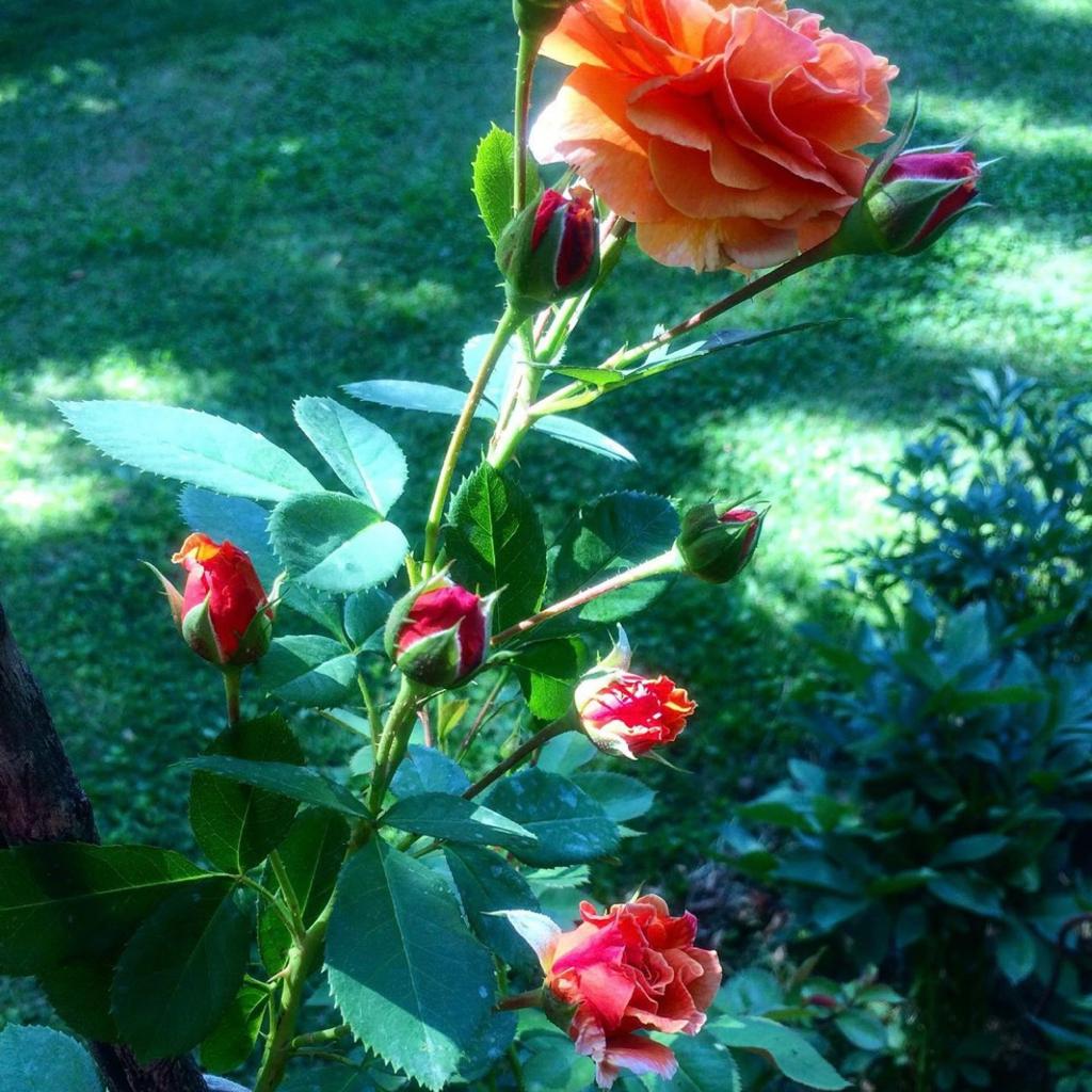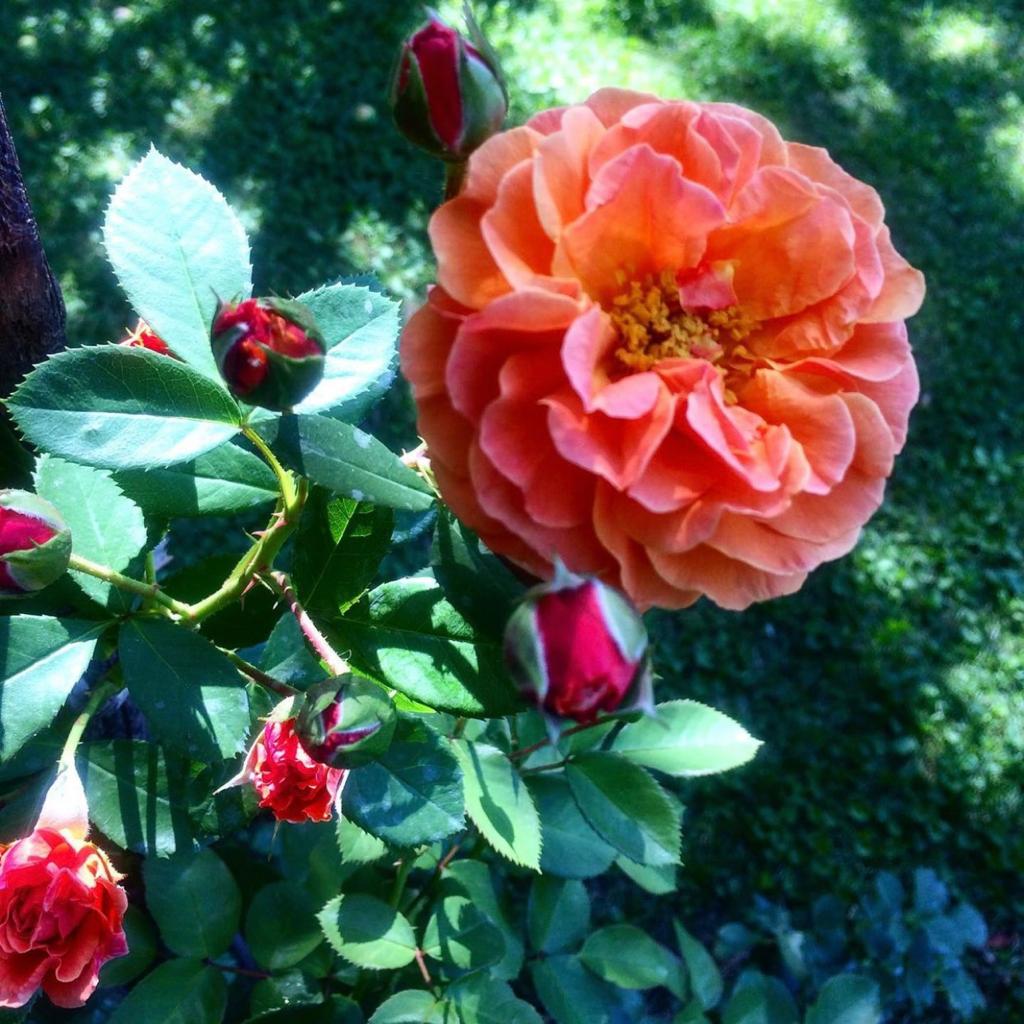 ебли прочные и длинные. Они густо покрыты глянцевой, темно-зеленой листвой. Цветки махровые, собранные в кисти по 5 штук. Также они отличаются классической чашевидной формой и шириной 8 – 10 см. Лепестки темно-оранжевые, но при отцветании становятся светло-персиковыми. Период цветения наступает позже, по сравнению с остальными шрабами. В итоге заполняется пробел между двумя волнами цветения других сортов.
